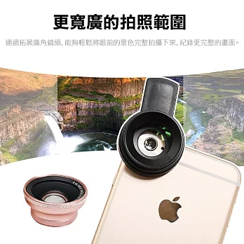 0.6X廣角+15X微距鏡頭 二合一鏡頭 無黑邊廣角不變形手機用鏡頭玫瑰金 ![]() |
