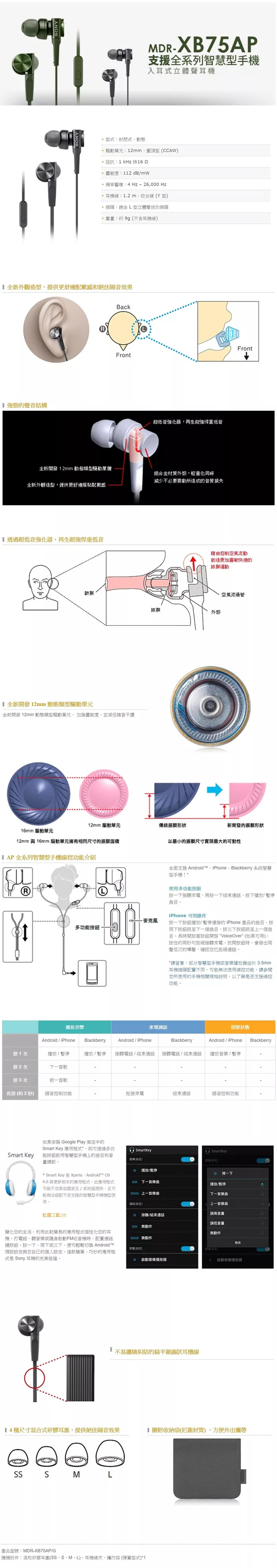 SONY MDR-XB75AP 重低音耳道式耳機 線控MIC適用手機 (保固一年永續保修)石墨黑 評價